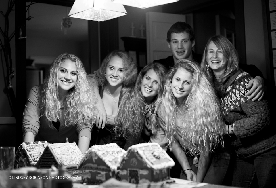 I have been slacking on my blog! I have been so busy with the holidays and enjoying a lot of time with my family. Speaking of family.. I LOVE photographing families! I especially love photographing families while they have fun! Check out some images of this beautiful family! It is a family tradition to decorate gingerbread houses every year right after Thanksgiving! They all get together for dinner and then it’s on! They team up and let’s just say this family takes gingerbread house decorating very seriously! They were so funny to watch! At the end we all wrote our votes for the ‘best’